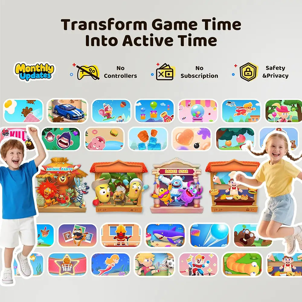 Let kids be kids! With Kinhank MotionX, children use their bodies to play engaging games, reducing phone and tablet use while staying active and energized.